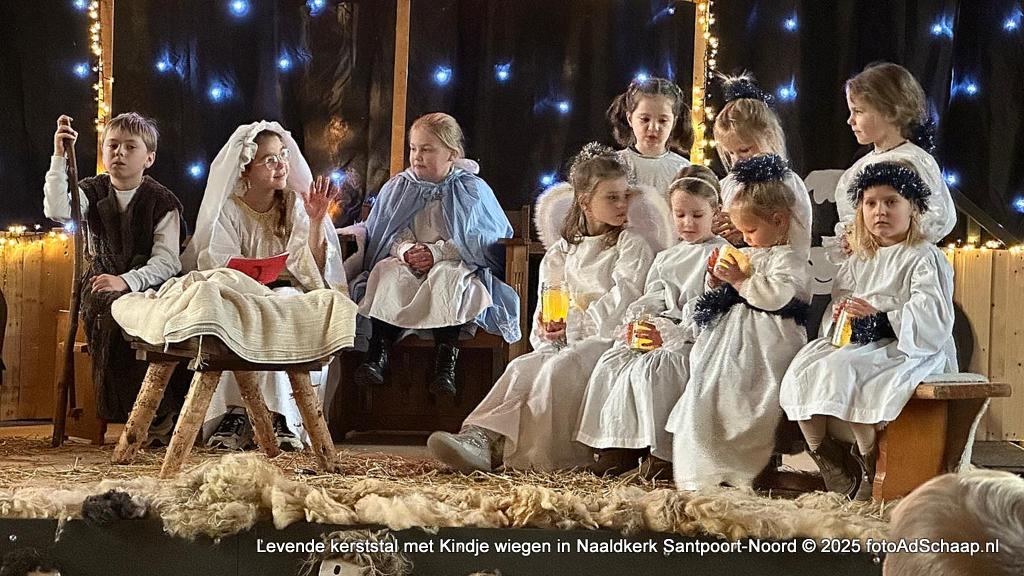 SANTPOORT-NOORD - In de Naaldkerk in Santpoort-Noord werd op donderdag 25 december eerste kerstdag een levende kerststal nagespeeld. Het is een traditie dat met Kerstmis de deuren van de Naaldkerk open staan voor het Kindje Wiegen. Al jaren ...