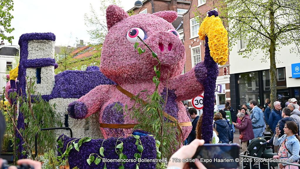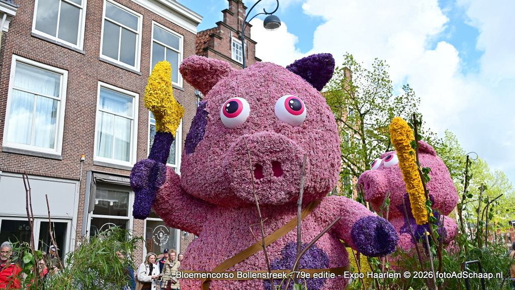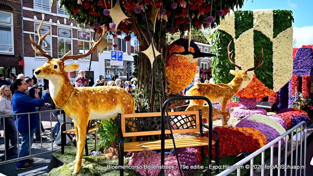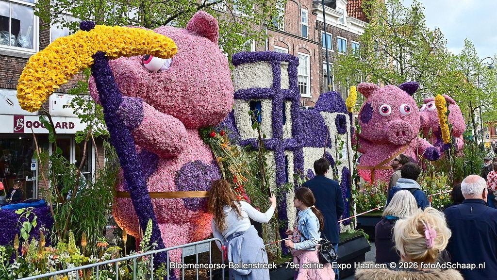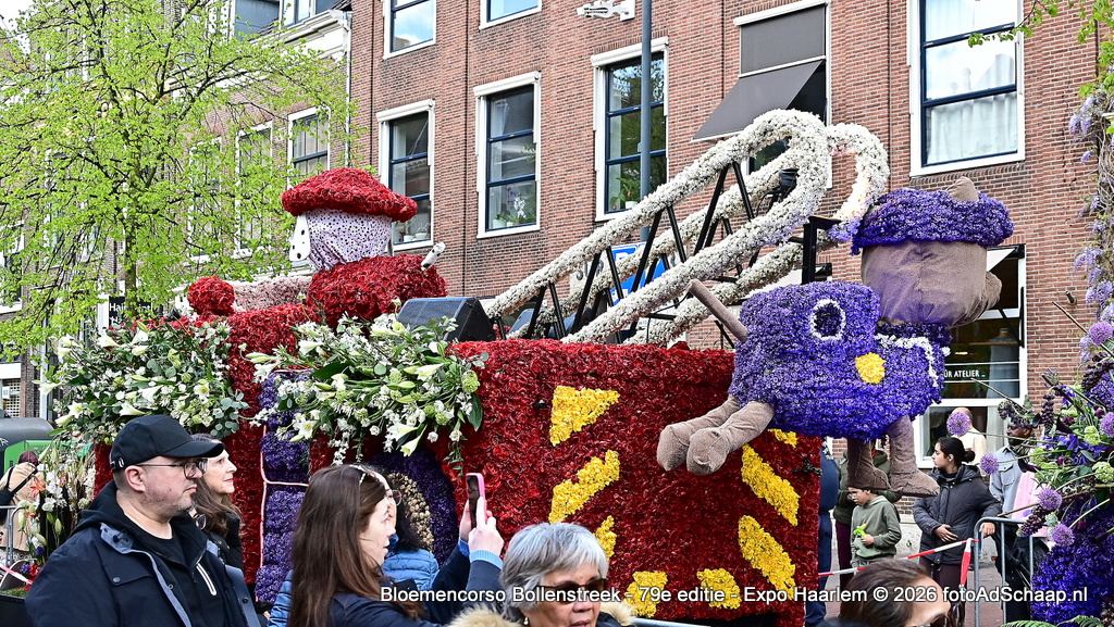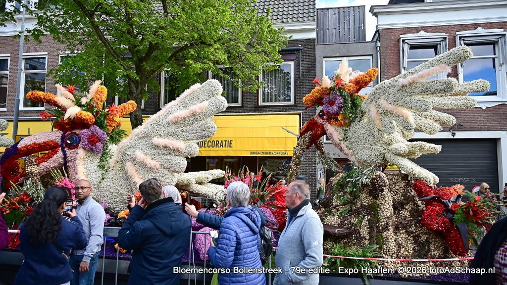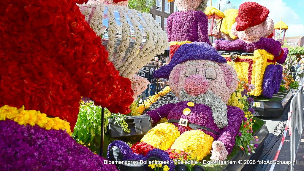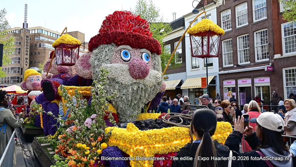 HAARLEM - Het Bloemencorso van de Bollenstreek had ook dit jaar weer als eindbestemming de prachtige binnenstad van Haarlem. De corsowagens kwamen op zaterdag 18 april rond 21:00 uur in Haarlem aan. Vervolgens waren de Corsowagens de hele zondag van dichtbij te bewonderen in het centrum van de bloemenstad.