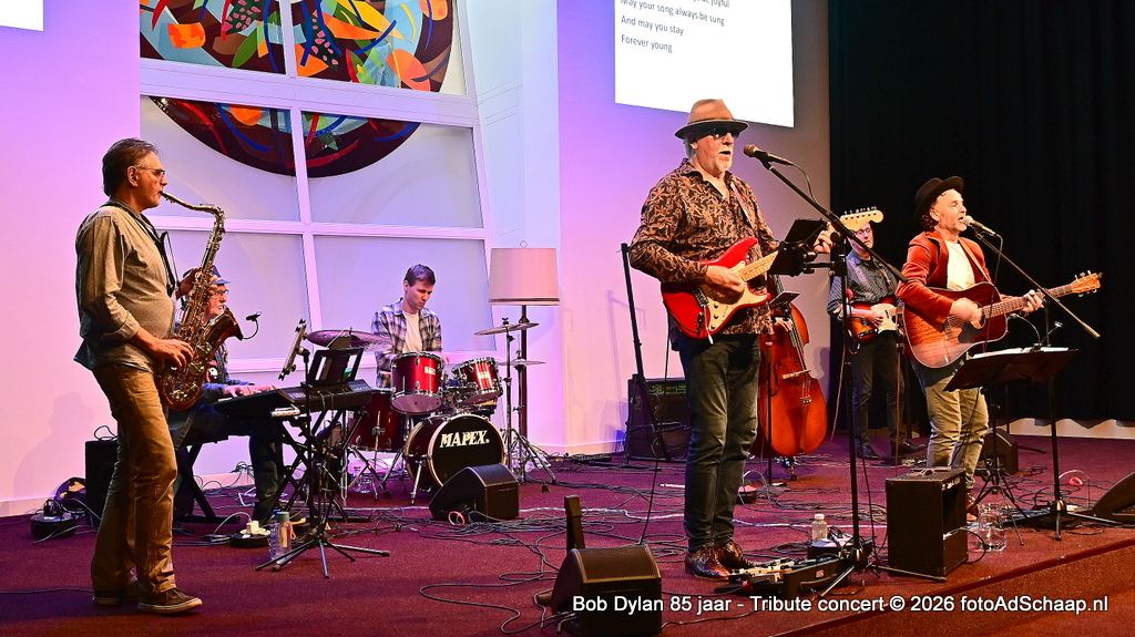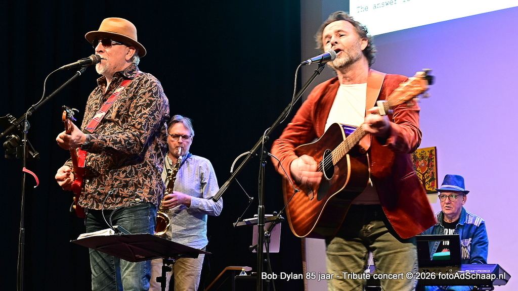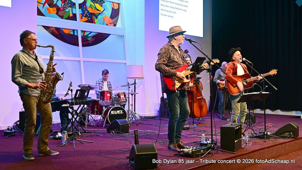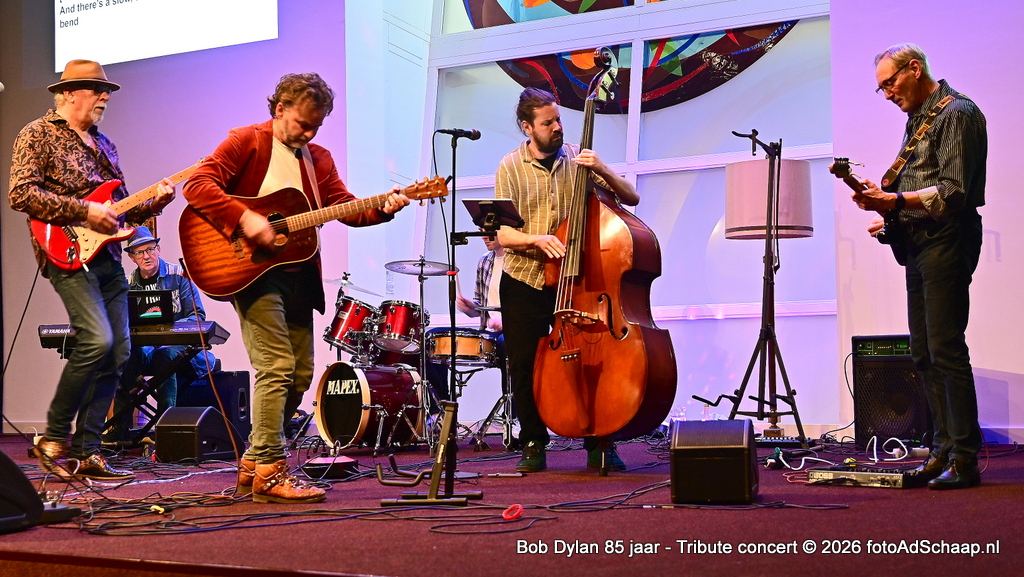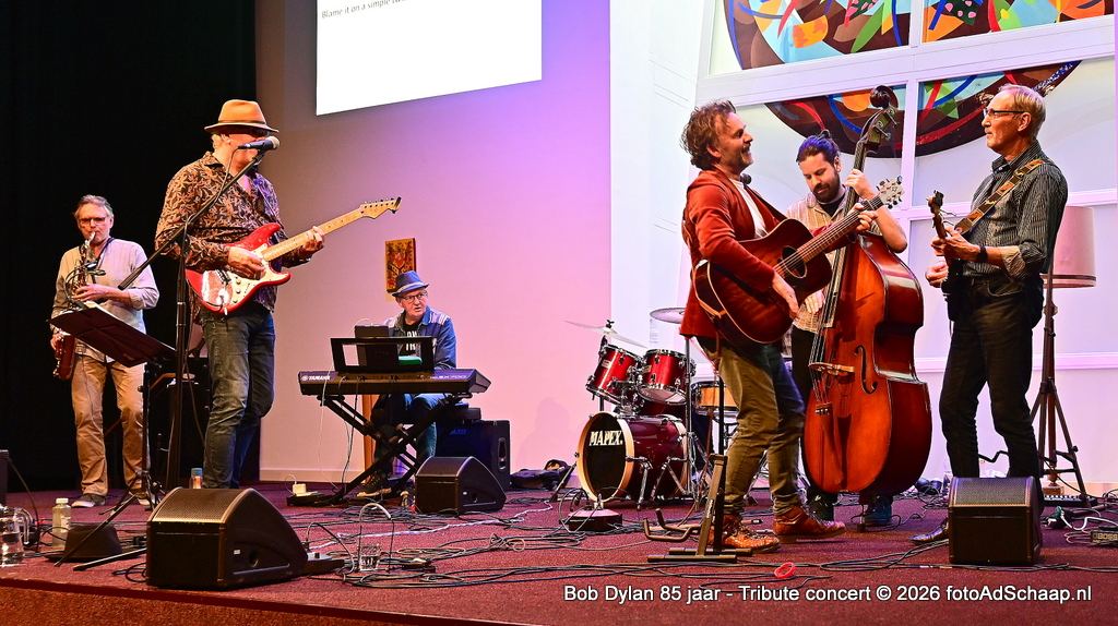 HAARLEM - Tien jaar geleden werd ter gelegenheid van Bob Dylans 75ste verjaardag een groot concert georganiseerd in Het Verhalenhuis Haarlem met toelichtende teksten door dr. Kick Bras. Het was een groot succes. Nu, tien jaar later op zijn 85ste verjaardag was de gelegenheid om dat nog één keer over te doen in een vernieuwde versie met begeleiding van de band Slow Train. De band heeft dezelfde naam als het nummer dat voor het eerst verscheen op Bob Dylan zijn album Slow Train Coming uit 1979.