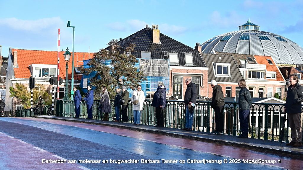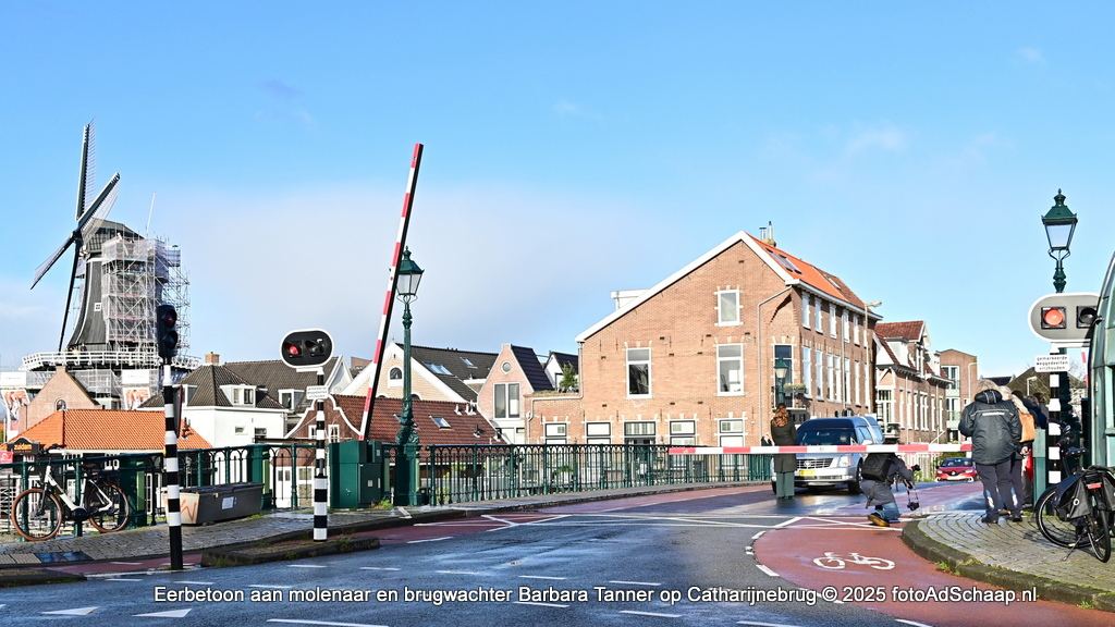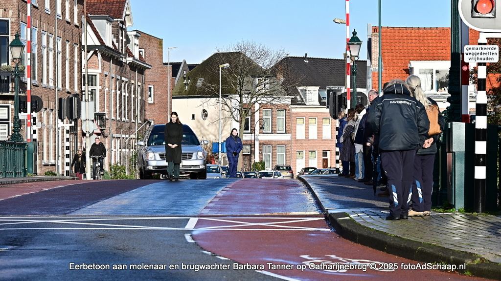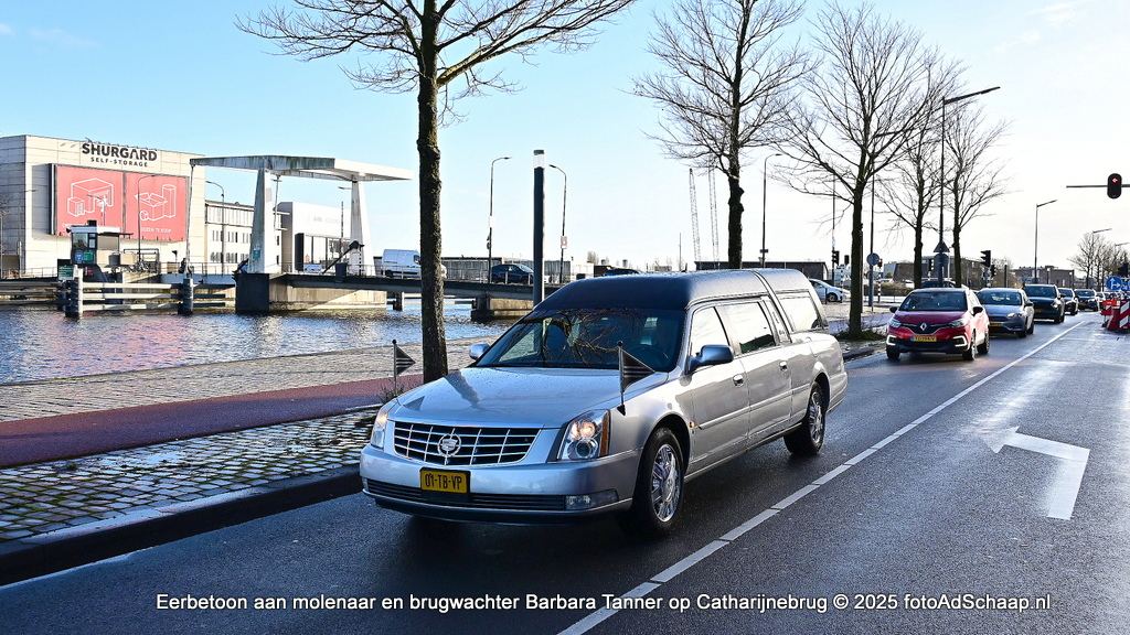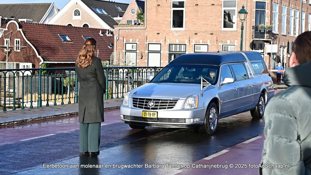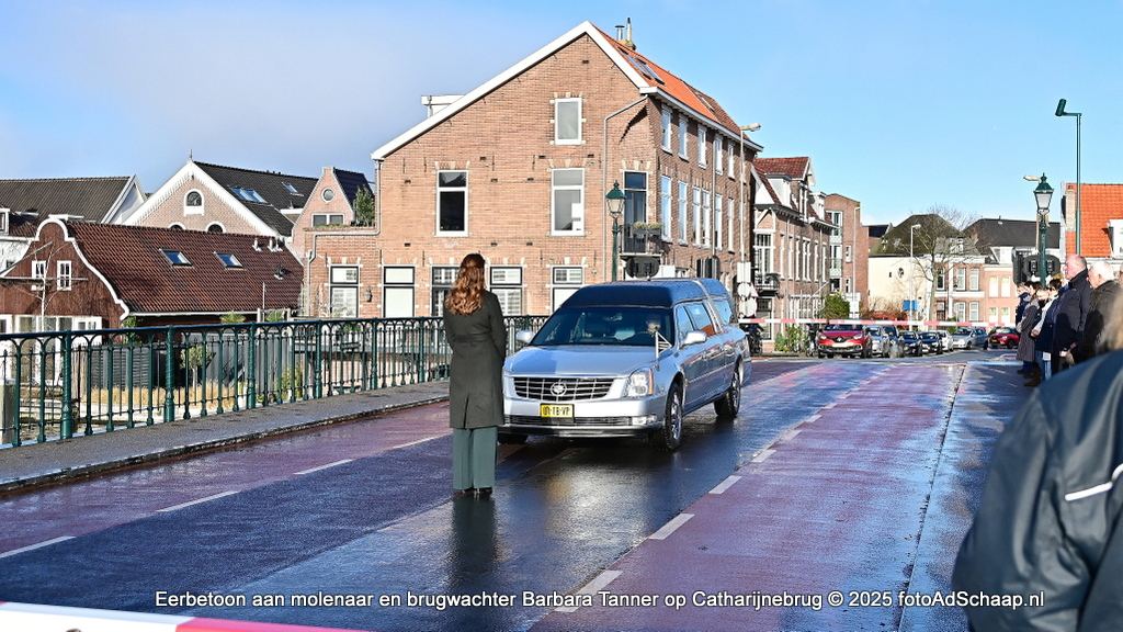 HAARLEM – Op maandag 17 november rond 14.30 uur werd de rouwstoet, met molenaar en brugwachter Barbara Tanner, opgesteld bij de Koepel aan de Papentorenvest. Daarna reed de rouwauto met de kist naar de Catharijnebrug, waar de rouwauto midden op de brug stil werd gezet. De brugwachters van Haarlem sloten de slagbomen van de brug één minuut als eerbetoon aan hun overleden collega Barbara Tanner.