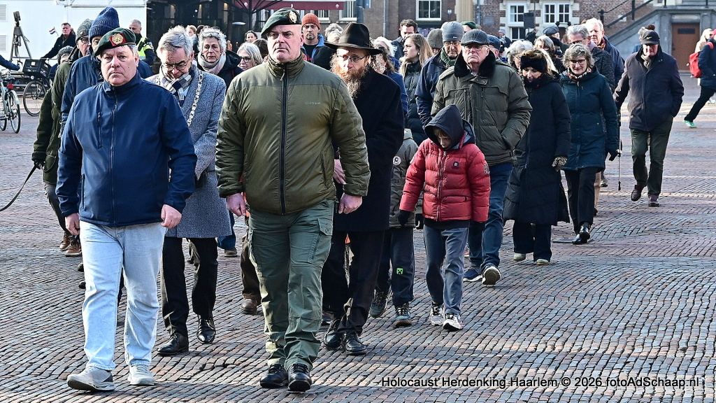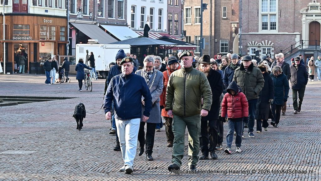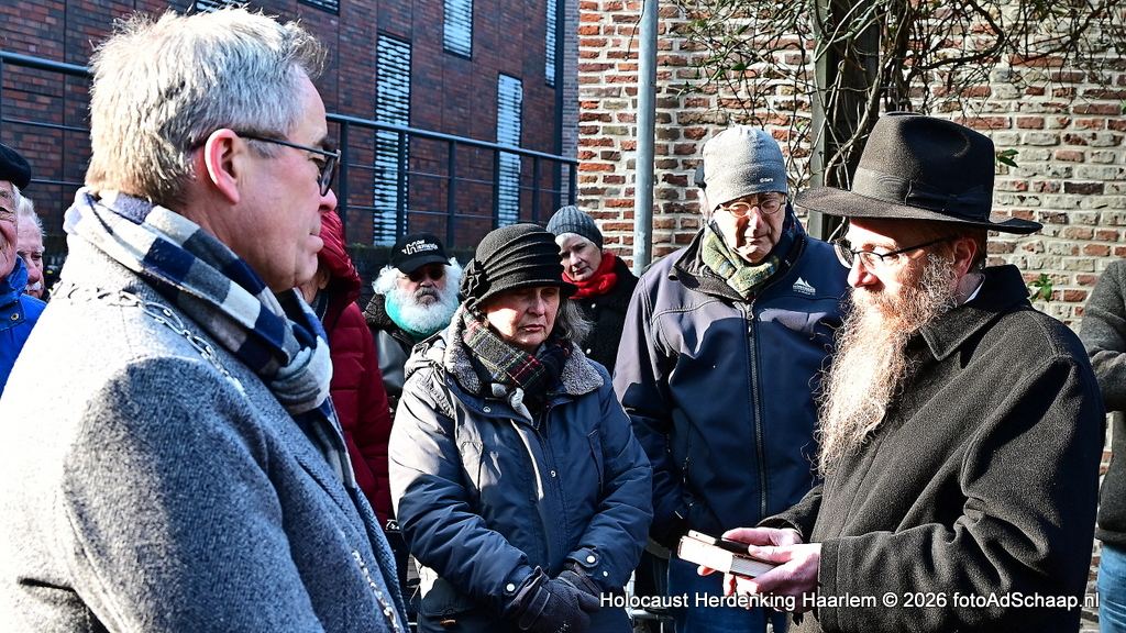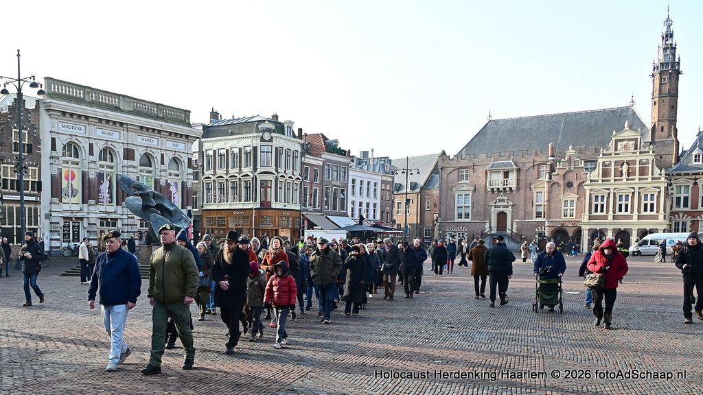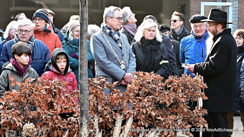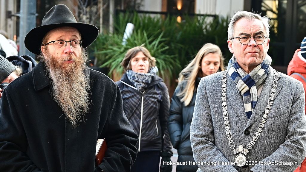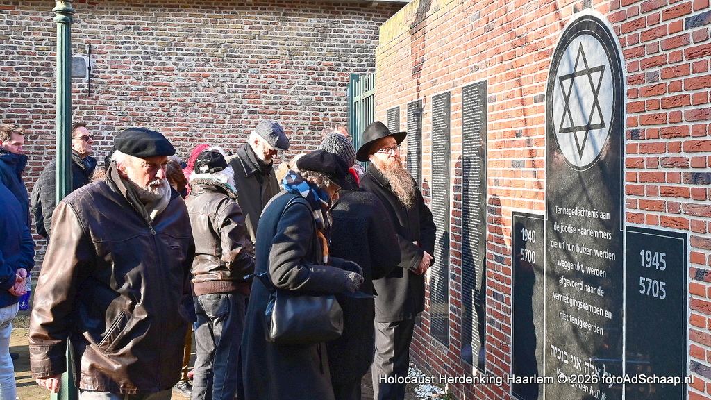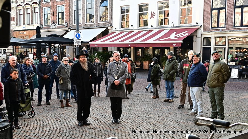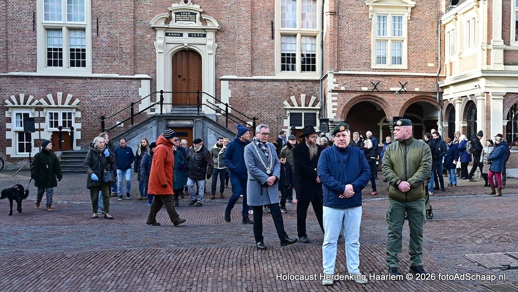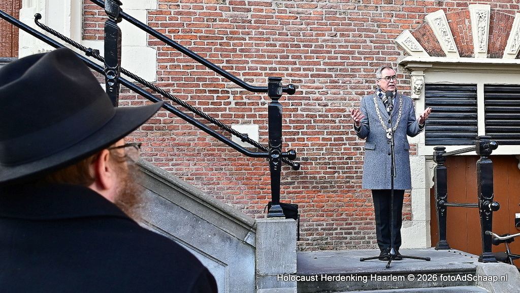 Rond 13.00 uur nam burgemeester Jos Wienen het woord vanaf de trap van het stadhuis. Hij memoreerde waarom een aparte herdenking van de Holocaust naast de Nederlandse Dodenherdenking op 4 mei belangrijk is. ,,Dit gaat om een wereldwijde herdenking. Het was een doelbewuste poging om een heel volk te vernietigen.” Vanaf augustus 1942 werden uit Haarlem 1.477 Joden weggevoerd naar de concentratiekampen elders in Europa. Slechts enkele tientallen overleefden de oorlog.