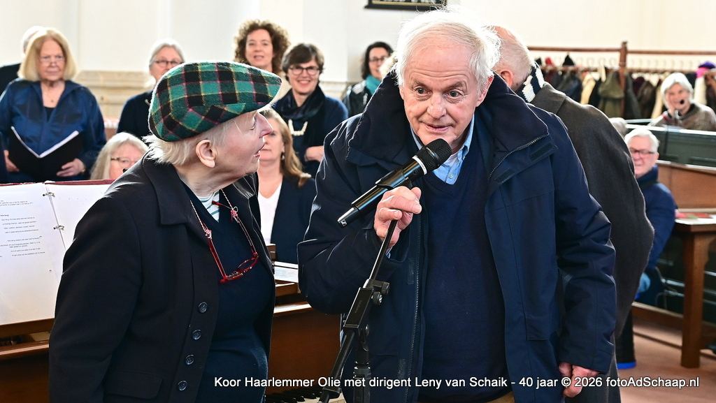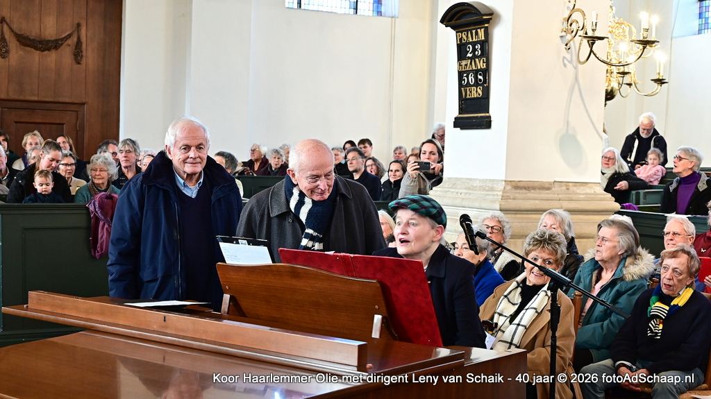 HAARLEM - Alweer 40 jaar geleden richtte Leny van Schaik gemengd koor Haarlemmer Olie op. Een groot en gezellig koor dat sinds die tijd op dinsdagochtend de sterren van de hemel zingt. Nog steeds zingen er een aantal leden van het eerst uur mee in het koor. Op zondag 25 januari vierde het koor haar jubileum feestje in de Nieuwe Kerk van Haarlem. Hier konden de liefhebbers luisteren, meezingen en meefeesten.