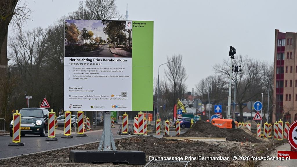 HAARLEM – Vanaf 12 januari is Dura Vermeer begonnen met de tweede fase van de herinrichting van de Prins Bernhardlaan vanaf de Leonard Springerlaan tot aan het Prinses Beatrixplein aan de oostzijde. Hierin is een faunapassage in het asfalt van de Prins Bernhardlaan opgenomen.