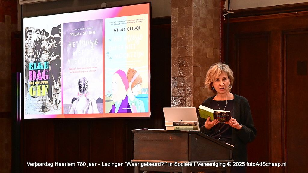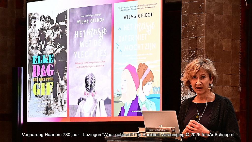 Wilma Geldof schreef drie young adult boeken over de (naweeën van de) Tweede Wereldoorlog: ‘Elke dag een druppel gif’ (2014), ‘Het meisje met de vlechtjes’ (2018) en ‘Het meisje dat er niet mocht zijn’ (2025). Alle drie spelen ze zich af in Haarlem. -